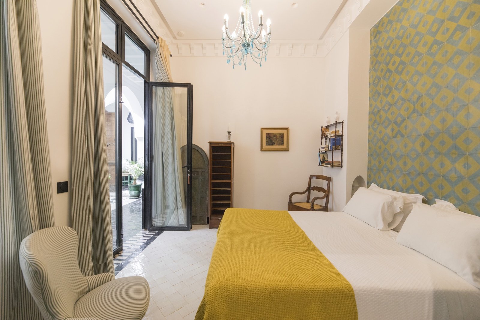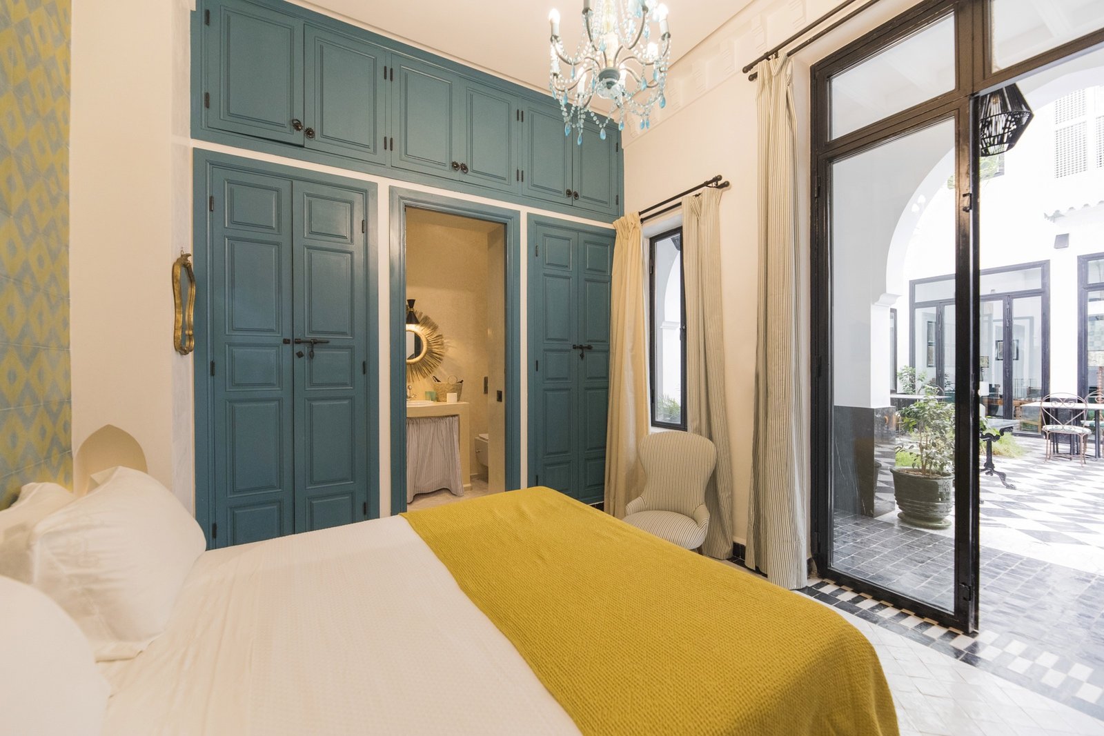 Located in the peaceful first patio of the riad, this elegant 20 m² room offers the same serene atmosphere as our Superior category, with the comfort of a queen-size double bed. Designed for couples seeking intimacy and style, it blends charm, comfort, and tranquility.